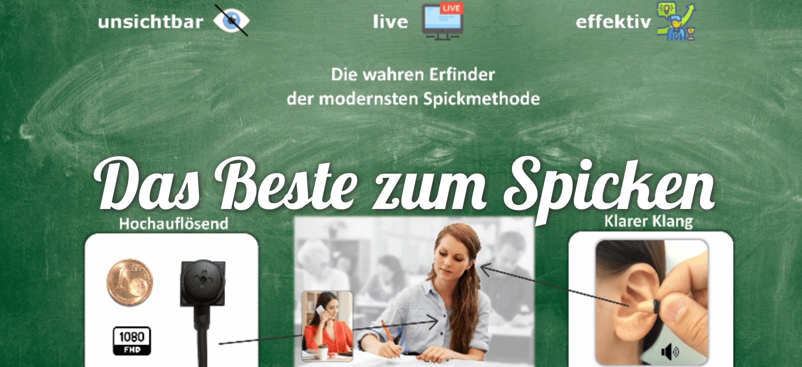 Im Studium eignen sich Mini Bluetooth Kopfhörer besonders gut zum Spicken in Klausuren. Sie sind so unauffällig, dass man sie problemlos während einer Klausur ins Ohr einsetzen kann. Dank des Kopfhörers lässt sich eine Verbindung zu einer helfenden Person über einen normalen Anruf mit dem Smartphone herstellen. Dieses ist mit Bluetooth an den Kopfhörer gekoppelt, wodurch eine klare Verbindung entsteht. In Kombination mit einer Minikamera kann die helfende Person die Aufgaben deiner Prüfung sehen und dir so die richtigen Antworten vorgeben.